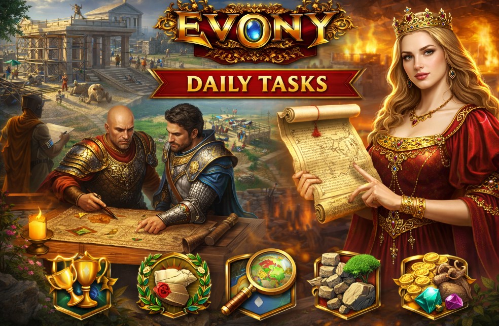 Daily tasks in Evony reward structure, not grind. Players who treat dailies as a routine optimization problem gain steady progress with less effort over time.